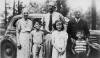 father, holding me) Alexander (my father's Uncle Zan Bell) standing: man,